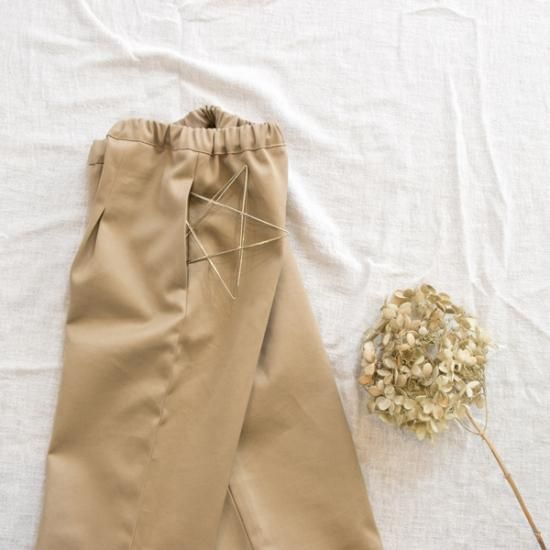 後ろポケットの型紙はありませんが、お好みでサーカスパンツのポケットなどを付けても◎!